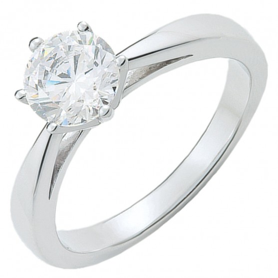 Bague Girard or blanc 750 millièmes, solitaire embelli d'un diamant serti de six griffes de 1 carat qualité GSI.