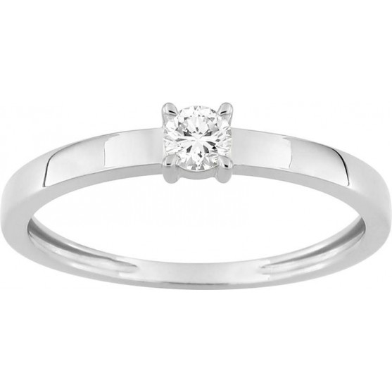 Ce solitaire en or blanc 375 millièmes Diamanti référence 9KLGD027W, se décline dans une version tout en finesse et élégance, l'anneau en or blanc est serti d'un sublime diamant synthétique de 0.15 carat de qualité F-VS. Ce modèle existe également en or jaune.