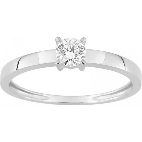 Ce solitaire en or blanc 375 millièmes Diamanti référence 9KLGD029W, se décline dans une version tout en finesse et élégance, l'anneau en or blanc est serti d'un sublime diamant synthétique de 0.25 carat de qualité F-VS. Ce modèle existe également en or jaune.