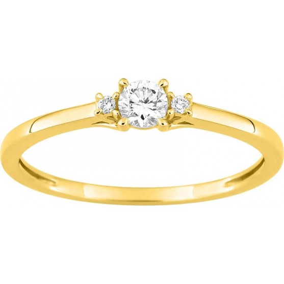 Ce solitaire en or 375 millièmes Diamanti référence 9KLGD042Y, se décline dans une version tout en finesse et élégance, l'anneau en or jaune est serti de diamants synthétiques de 0.16 carat de qualité F-VS. Ce modèle existe également en or blanc.