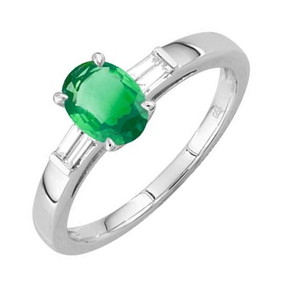 En son centre, une émeraude ovale d'un vert intense capte la lumière avec éclat.