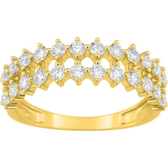 Cette bague en or 375 millièmes Diamanti référence 9KLGD157Y, se décline dans une version tout en finesse et élégance, l'anneau en or est serti de sublimes diamants synthétiques de 0.8 carat de qualité F-VS. Ce modèle existe également en or blanc.
