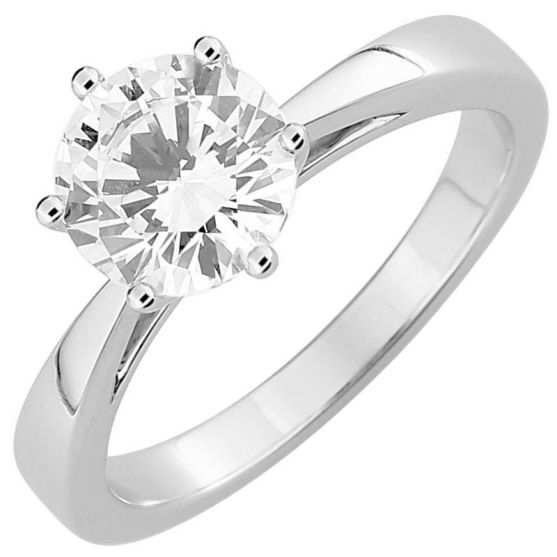 Bague or blanc 750 millièmes, solitaire embelli d'un diamant serti de six griffes de 1,5 carat qualité GSI.