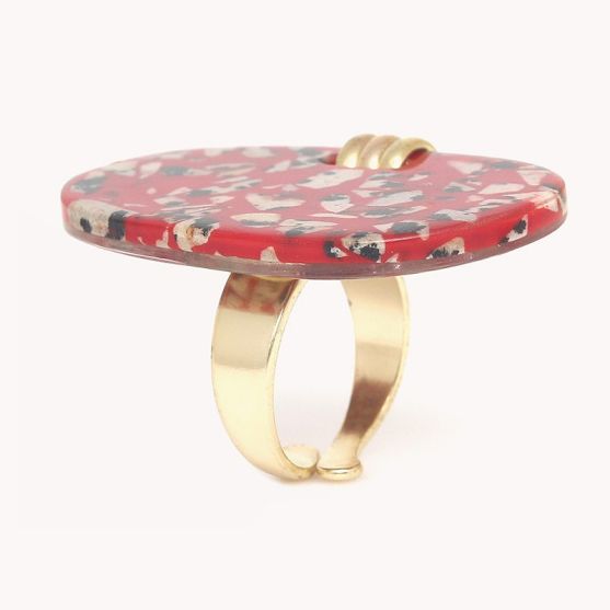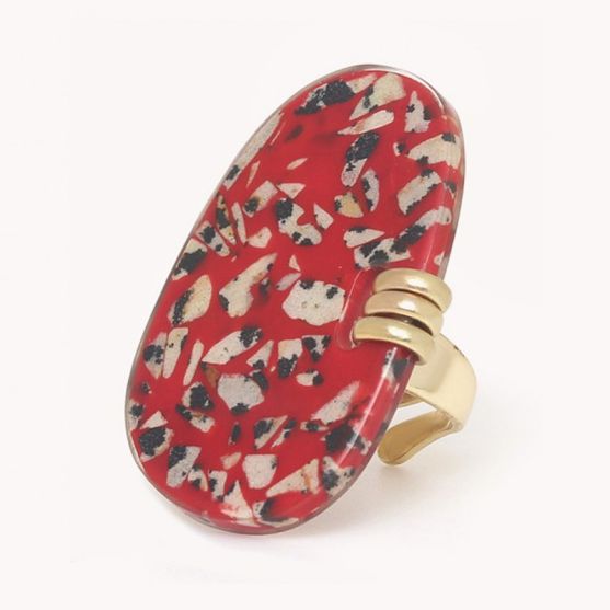 Cette bague ajustable Nature Bijoux Sicilia 19--25885 en laiton doré ornée d'un jaspe dalmatien rouge aux nuances mouchetés uniques est une création audacieuse et naturelle, parfaite pour celles qui aiment les bijoux à la fois authentiques et pleins de caractère.