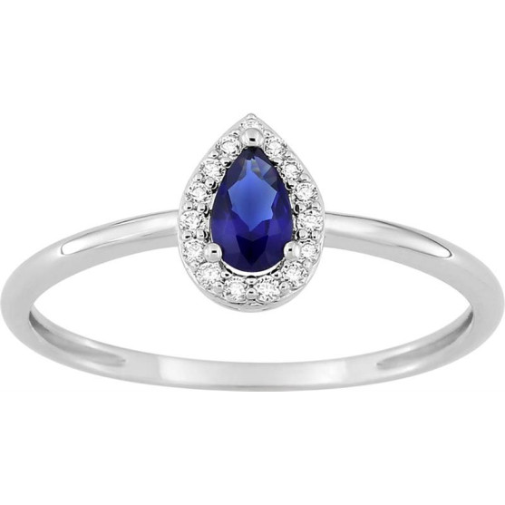Bague argent 925 millièmes rhodié. Cette bague en argent 925 présente un motif poire serti d'un oxyde de zirconium bleu et d'un entourage d'oxydes de zirconium.