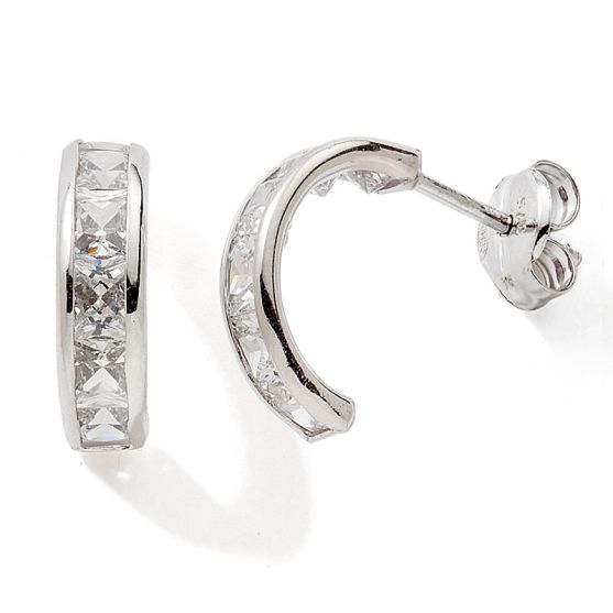 Boucles d'oreilles demi créoles or blanc 750 millièmes serties d'oxydes de zirconium.