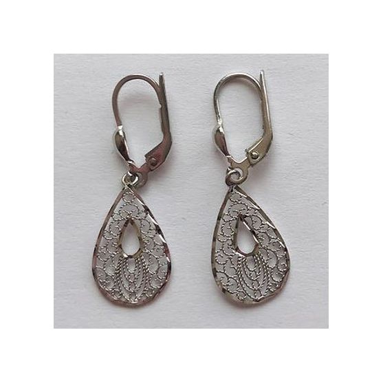 Ces boucles d'oreilles en argent 925 millièmes rhodié se distinguent par leur forme goutte délicatement ajourée. Le motif finement travaillé, façon filigrane, apporte une grande légèreté visuelle et bel effet de dentelle.