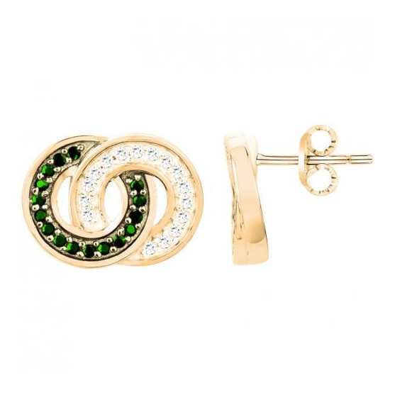 Boucles d'oreilles boutons plaqué or serties d'oxydes de zirconium blancs et verts.