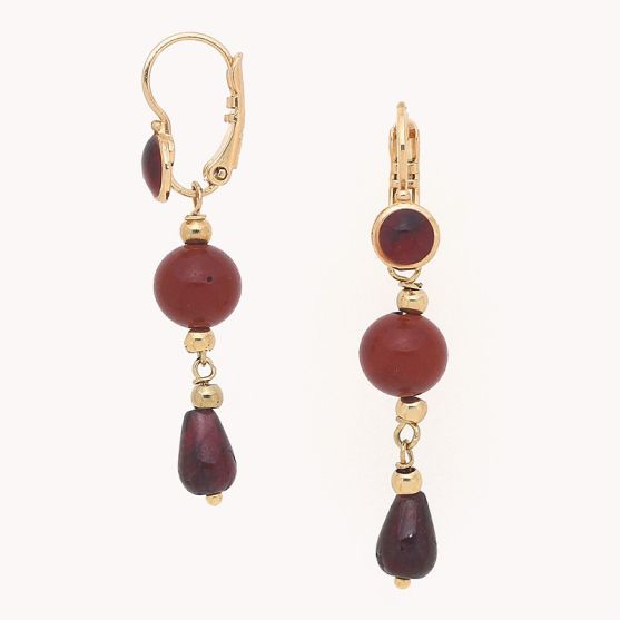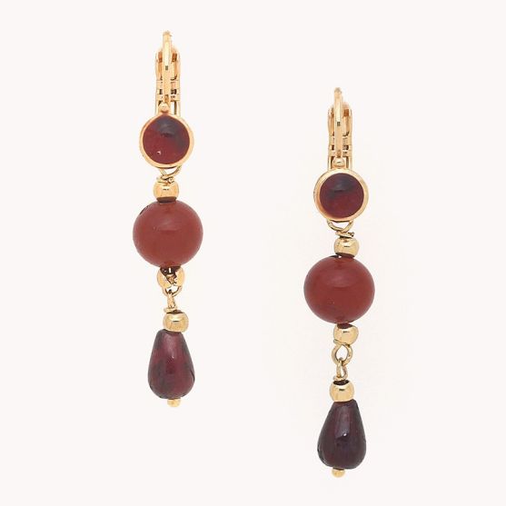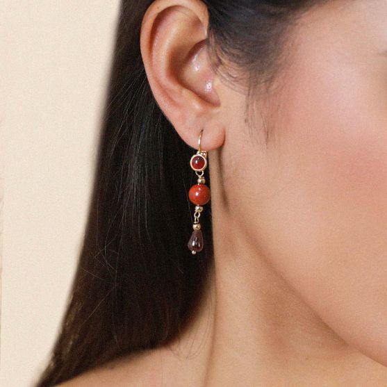 Réalisées en laiton doré, elles se parent de grenats, pierres naturelles qui symbolise la passion et la vitalité.