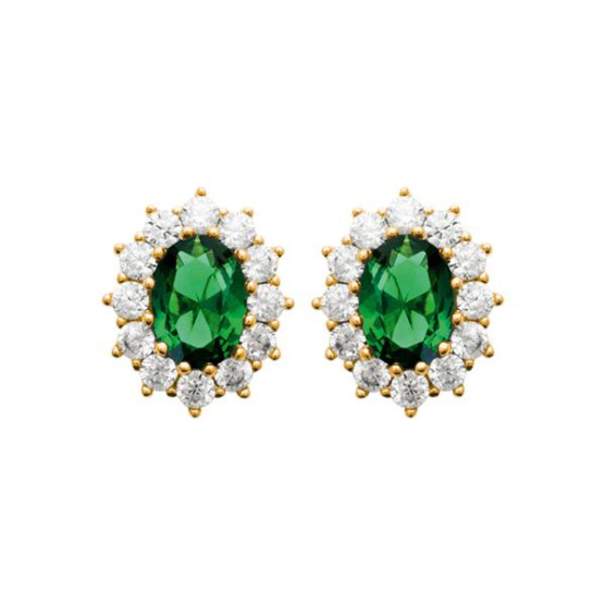 Boucles d'oreilles boutons plaqué or serties d'oxydes de zirconium blancs et verts.