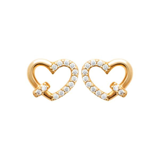 Boucles d'oreilles boutons plaqué or. Ces boucles d'oreilles boutons présentent des coeurs sertis d'oxydes de zirconium.