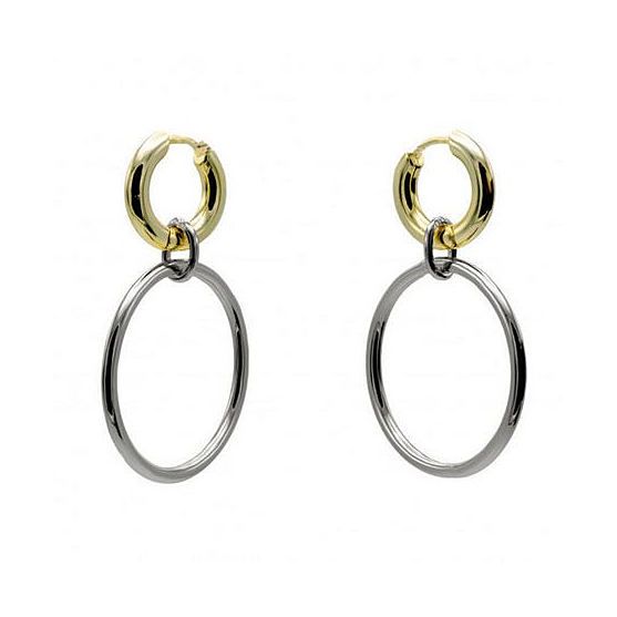La partie supérieure est composée d'une petite créole lisse finition dorée, apportant une touche chaleureuse et lumineuse. Elle est prolongée par un anneau ovale en argent rhodié, qui crée un contraste élégant et moderne.
