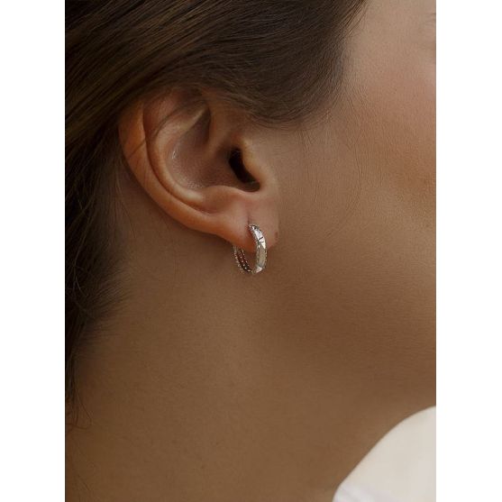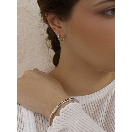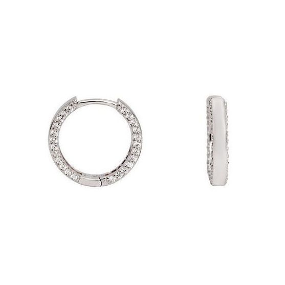 Ces boucles d'oreilles créoles en argent 925 millièmes rhodié sont élégamment serties d'oxydes de zirconium.