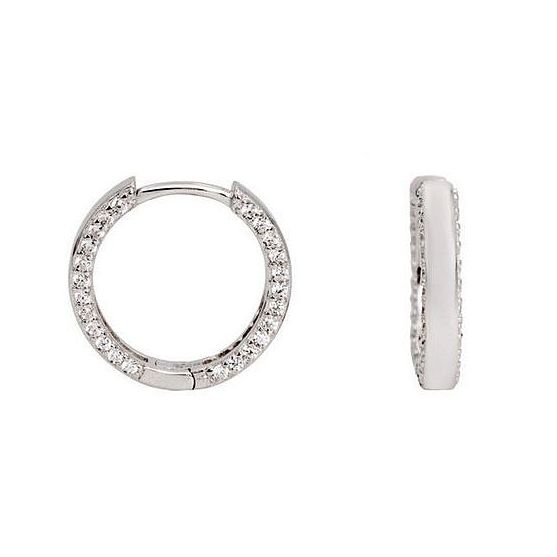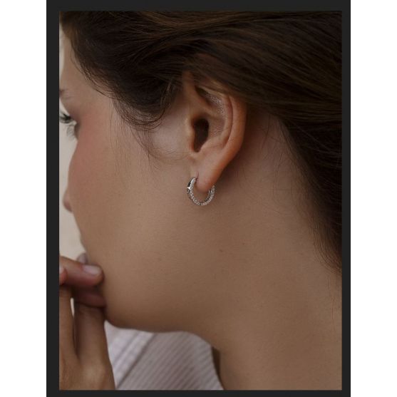 Ces boucles d'oreilles créoles en argent 925 millièmes rhodié sont élégamment serties d'oxydes de zirconium.
