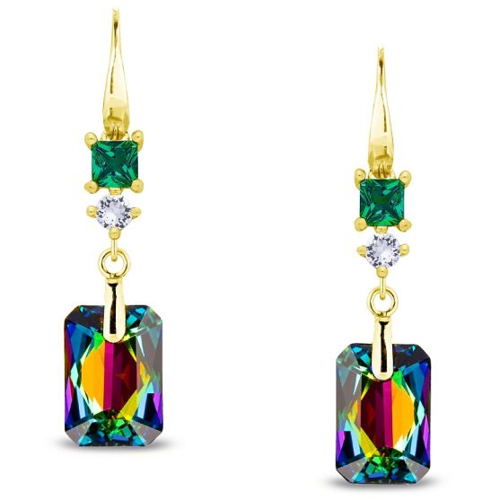 NEW Boucles d'oreilles pendants argent doré et cristal Spark - G0596ND