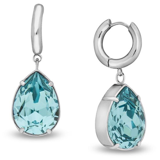 Ces boucles d'oreilles en acier sont ornées de cristaux.