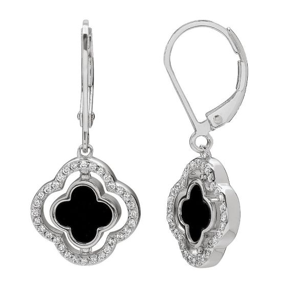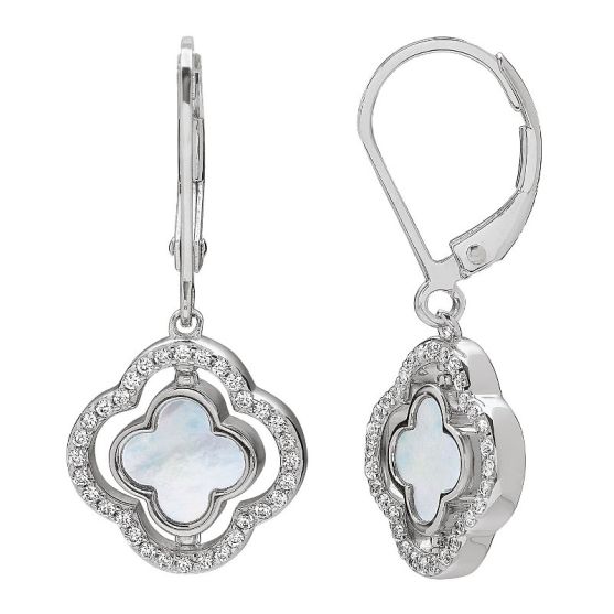 Boucles d'oreilles pendantes argent 925 millièmes Charles Garnier. Ces boucles d'oreilles en argent réversibles ornées coté recto d'agate et coté verso de nacre sont serties d'oxydes de zirconium.