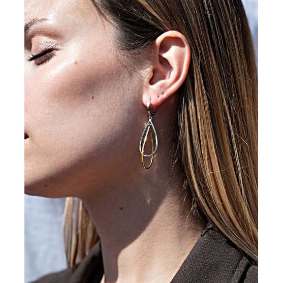 Boucles d'oreilles pendantes argent 925 millièmes rhodié et doré LINEARGENT.