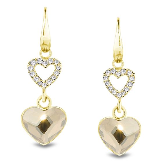 Ces boucles d'oreilles coeurs en argent 925 doré sont ornées de cristaux et serties d'oxydes de zirconium.