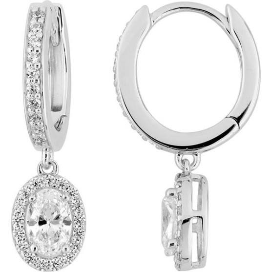 Ces boucles d'oreilles Murat Paris en argent 925 millièmes rhodié séduisent par leur allure délicatement rétro. Les créoles, finement serties d'oxydes de zirconium sur l'anneau, captent la lumière avec élégance. Elles sont sublimées par un pendant central, composé d'un oxyde ovale entouré d'un pavage d'oxydes, créant un jeu d'éclat raffiné.