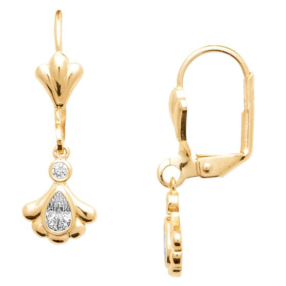 Boucles d'oreilles dormeuses plaqué or bicolores serties d'oxydes de zirconium.