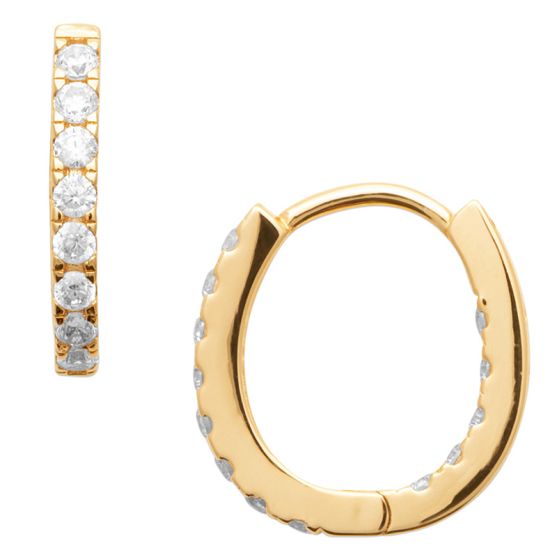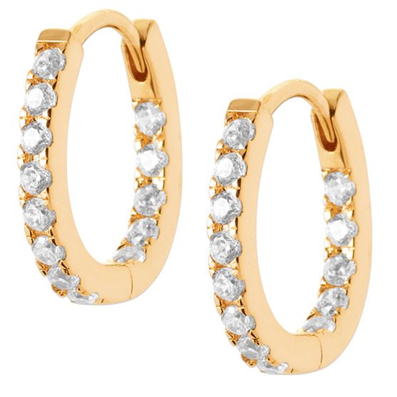 Ces boucles d'oreilles créoles plaqué or sont serties d'oxydes de zirconium.