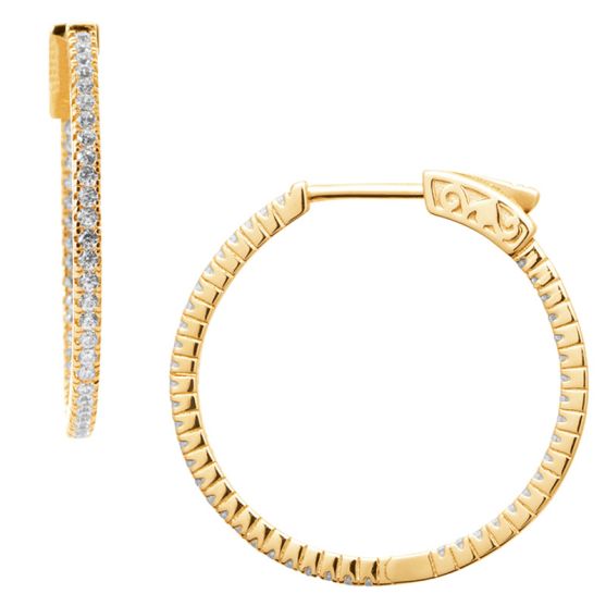 Ces boucles d'oreilles créoles plaqué or sont serties d'oxydes de zirconium.