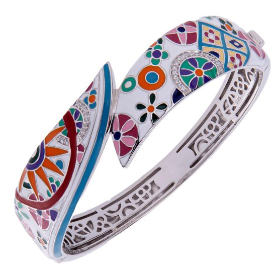 Bracelet rigide argent 925 millièmes. Ce bracelet rigide ouvrant de la marque Una Storia, en argent orné d'Email multicolore est serti d'oxydes de zirconium. Les bijoux Una Storia vous conteront la plus belle des histoires, la vôtre!
