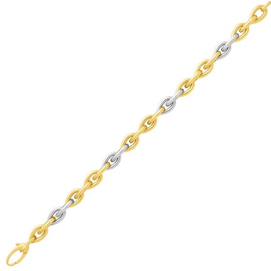 Bracelet or 750 millièmes grain de café bicolore réf. 682.2G. Ce bracelet or 750 de 19 cm de longueur présente une jolie maille fantaisie d'une largeur de 7,3 mm.