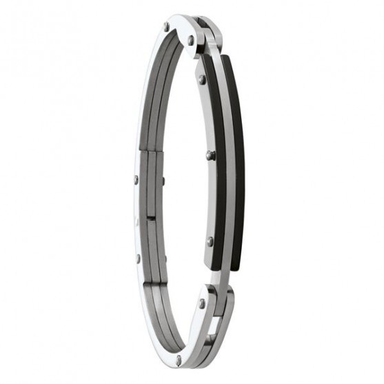 Ce bracelet menotte Jourdan Zeus, référence JH150190B, en acier gris et orné d'onyx est élégant et masculin.