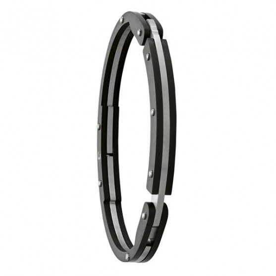 Ce bracelet menotte Jourdan Zeus, référence JH150196B, en acier gris et noir est élégant et masculin.