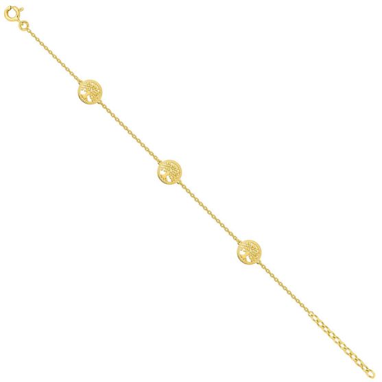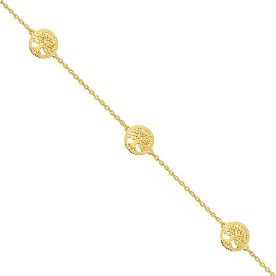 Ce bracelet plaqué or présente 3 ravissants motifs arbre de vie sur une chaine maille forçat.