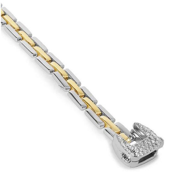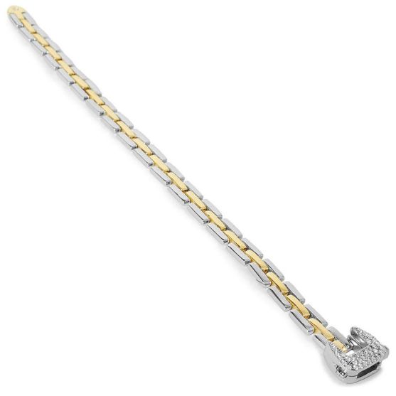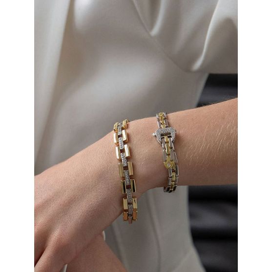 Un bracelet moderne et élégant en argent 925 millièmes bicolore, mêlant avec finesse des mailles argentés à une ligne centrale dorée qui apporte chaleur et contraste.