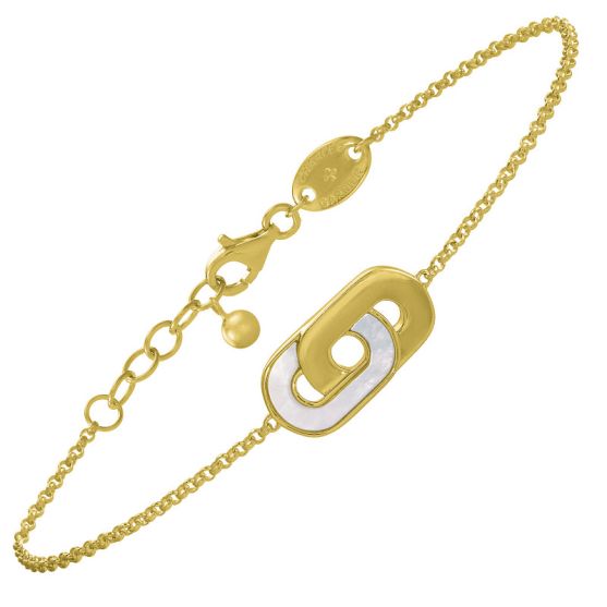 Bracelet argent doré 925 millièmes Charles Garnier. Ce bracelet argent doré présente un motif rectangulaire orné de nacre sur une maille jaseron.