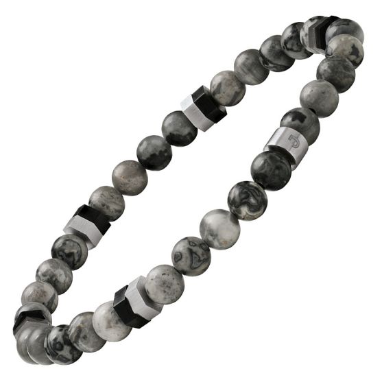 Bracelet acier Jourdan JH100026B. Ce bracelet tendance de la marque Jourdan présente des perles de jaspe grises et d'acier.