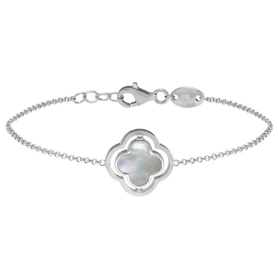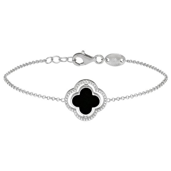Bracelet argent 925 millièmes Charles Garnier AGF170282B. Ce bracelet argent présente un motif réversible trèfle orné coté recto d'une agate noire et verso de nacre sur une maille jaseron.