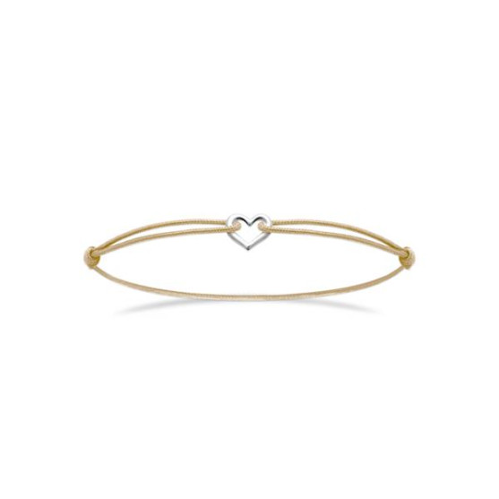Ce bracelet cordon présente un coeur en argent 925 millièmes rhodié sur un cordon beige ajustable.