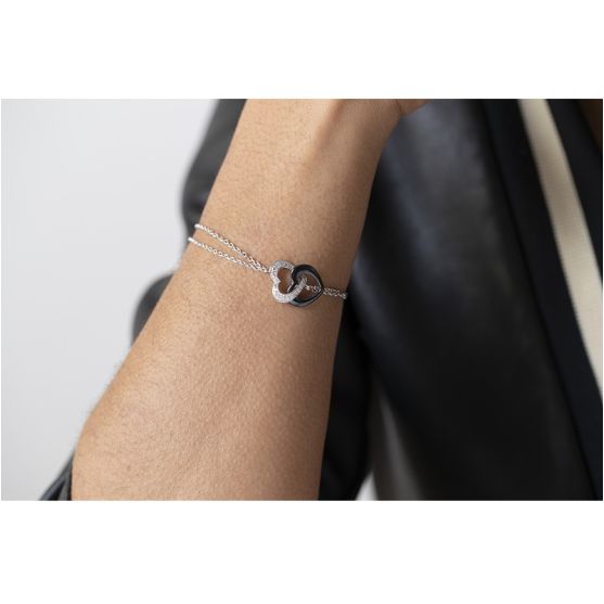 Bracelet Phebus en argent 925 millièmes rhodié est composé d'une double chaine qui sublime le poignet avec légèreté. Au centre, deux coeurs entrelacés symbolisent l'union et l'amour :