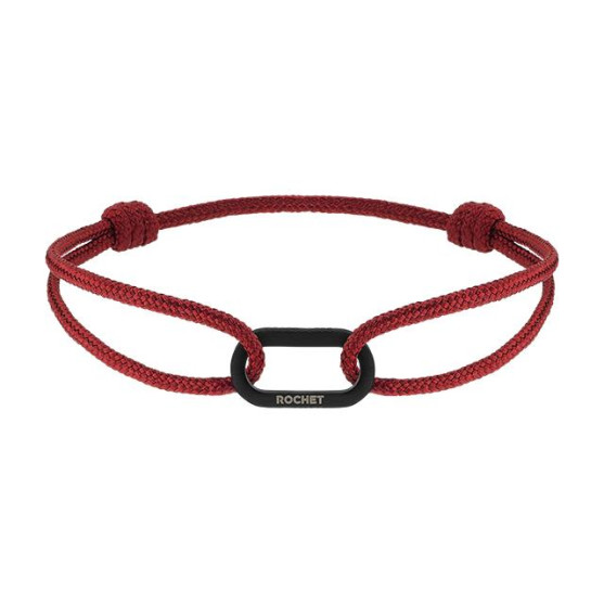 Ce bracelet Rochet au style contemporain associe avec caractère un cordon en coton rouge à un élément central en acier finition PVD noir. Son design épuré met en valeur un motif ovale légèrement allongé, traversé par le cordon pour un rendu moderne et graphique.
