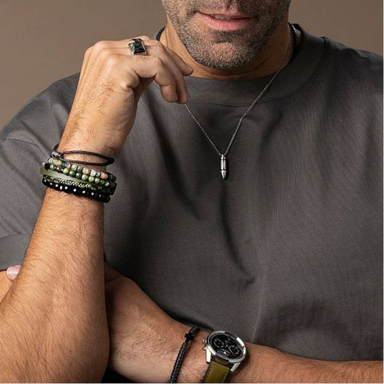Bracelet Rochet au style sobre et contemporain, composé d'un cordon noir ajustable qui épouse parfaitement le poignet. En son centre, une croix en acier PVD noir apporte une touche à la fois symbolique et moderne, avec une finition lisse et élégante.