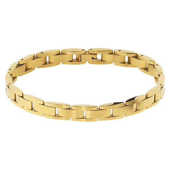 Bracelet homme Rochet au design épuré, réalisé en acier doré à la finition satinée qui lui confère un aspect doux et subtilement mat. Ses lignes nettes et contemporaines soulignent une élégance discrète, tandis que la teinte dorée apporte une touche chaleureuse et raffinée. A la fois robuste et intemporel, ce bijou s'impose comme un essentiel du vestiaire masculin, facile à associer au quotidien comme lors d'occasions plus habillées.
