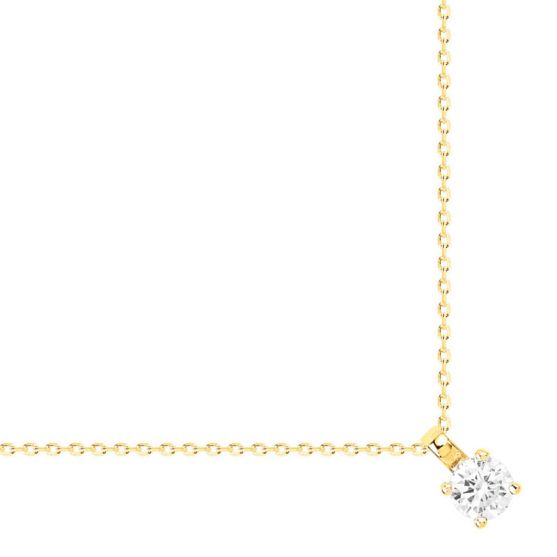 Ce ravissant collier en plaqué or présente un oxyde de zirconium sur une chaîne maille forçat. Simple et raffiné ce collier est idéal pour tous les jours.