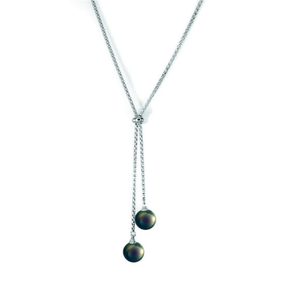 Elégant et contemporain, ce collier cravate de la marque Iza B réalisé en argent 925 millièmes rhodié est sublimé par deux perles de Tahiti. Il se compose d'une chaine maille fantaisie terminée par deux perles de Tahiti, aux reflets profonds et naturelles.