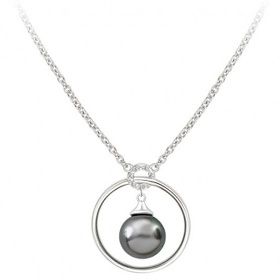 Collier en argent 925 millièmes rhodié signé Iza B, monté sur une chaine maille forçat ajustable de 38 à 45 cm. Son pendentif raffiné met en scène une perle de Tahiti (diamètre 10/11 mm) lovée au coeur d'un cercle d'argent, créant une illusion de flottement délicate et aérienne.