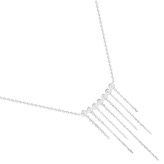 Ce collier en argent 925 millièmes séduit par son design moderne et raffiné. Il se compose d'une chaine maille forçat qui soutient un motif central formé de sept cercles sertis d'oxydes de zirconium étincelants. De chacun de ces cercles descendent de délicates chaines, créant un élégant effet de cascade scintillante.