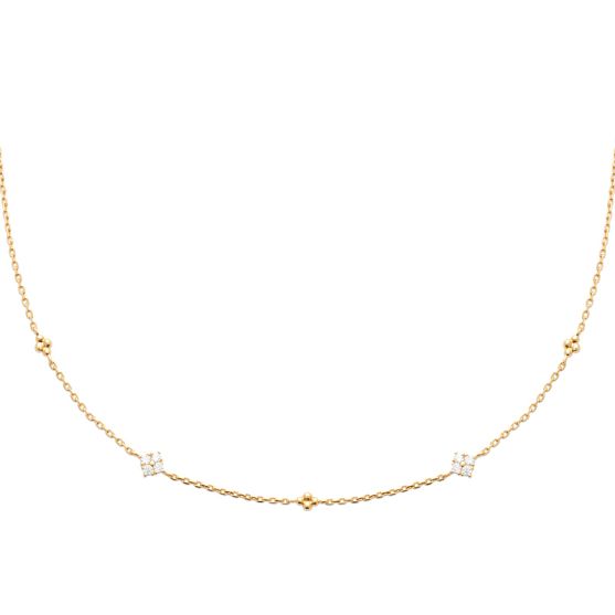 Ce collier plaqué or séduit par sa finesse et son élégance discrète. Sa chaine maille forçat est ponctuée de petits motifs sertis d'oxydes de zirconium scintillants, qui apportent une touche de lumière subtile et raffinée.