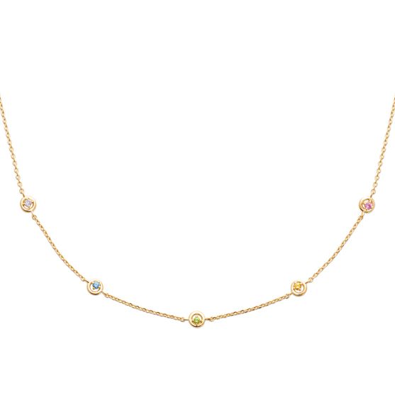 Un collier délicat en plaqué or, orné de pastilles serties d'oxydes de zirconium scintillants.