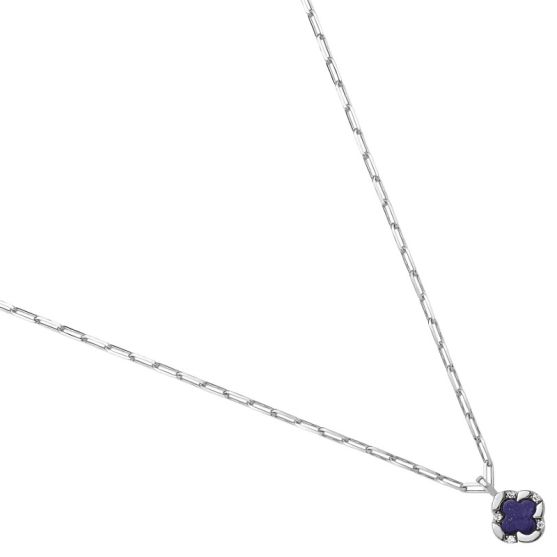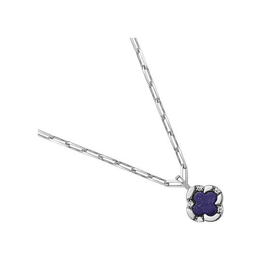 Collier argent 925 millièmes Charles Garnier AGF170201N. Ce collier argent présente un motif trèfle orné de lapis lazuli et serti d'oxydes de zirconium sur une maille cheval ajustable de 43 à 48 cm.