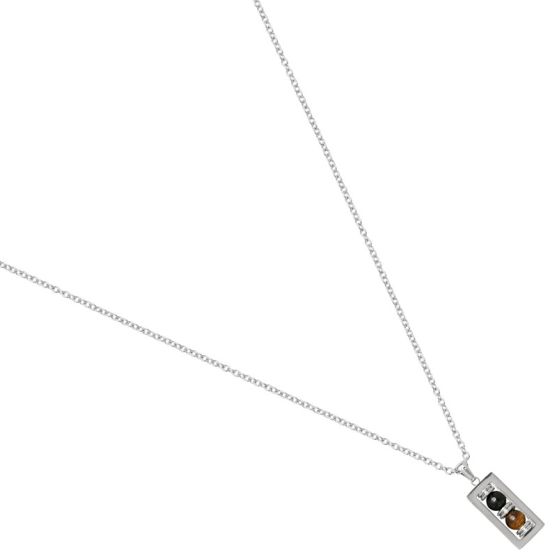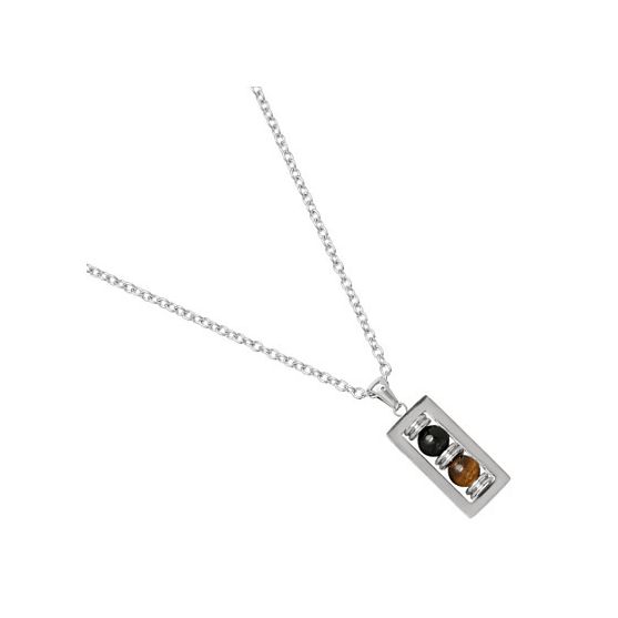 Collier acier Jourdan. Ce collier Jourdan en acier, se pare d'un pendentif en acier de ornée de perles d’œil de tigre sur une chaine maille forçat.