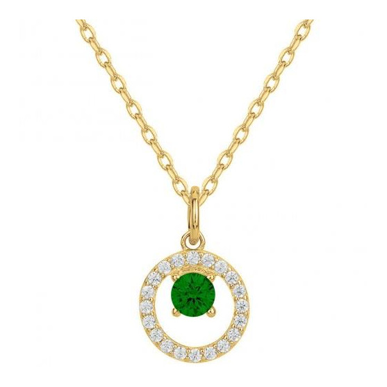 Ce collier Phebus en plaqué or présente un pendentif serti d'oxydes de zirconium verts et blancs sur une chaîne maille forçat.